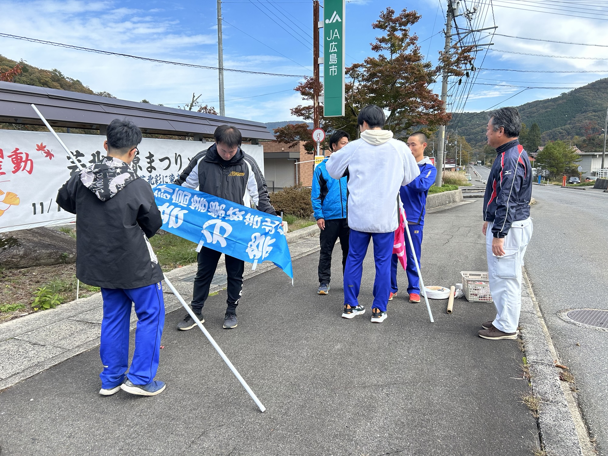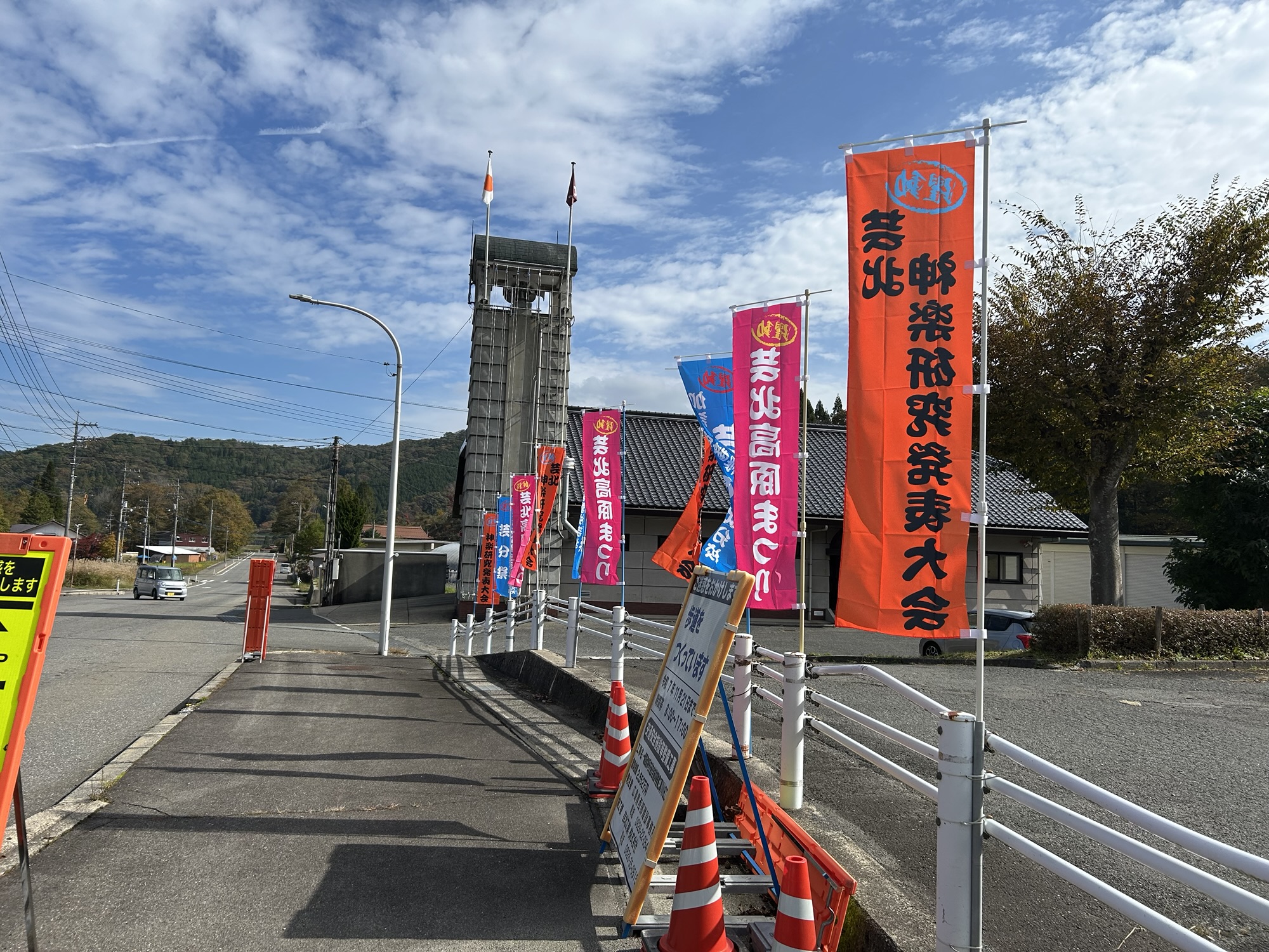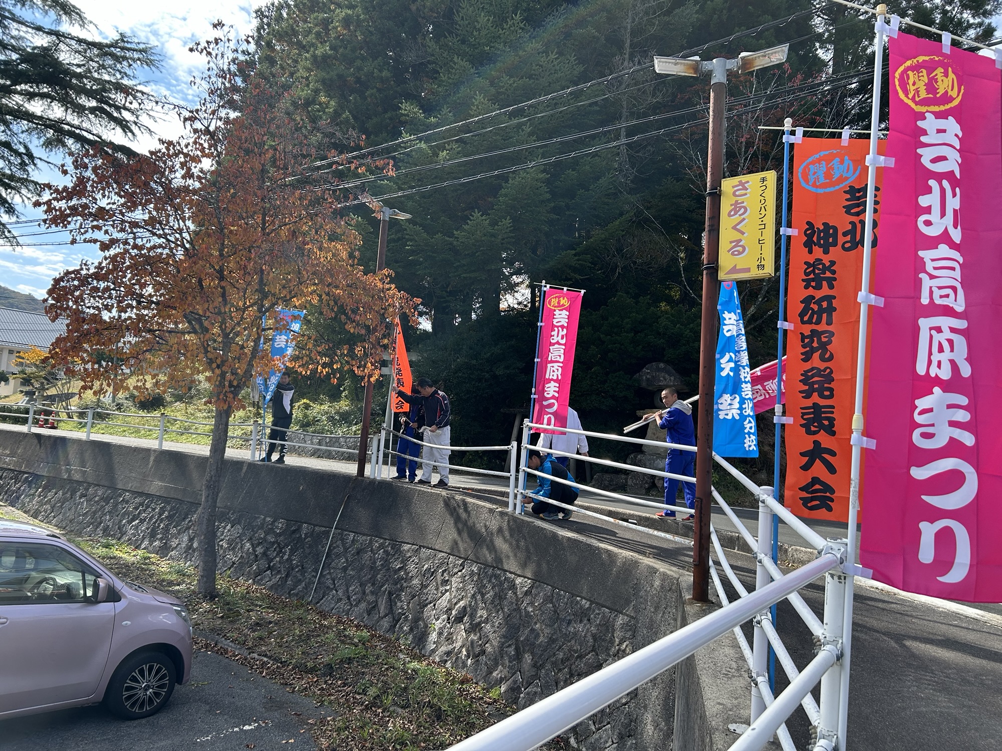 11/15,16日に開催予定の「芸北高原まつり✖️芸分祭」の看板とのぼり旗を支所前に設置しました。