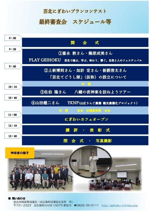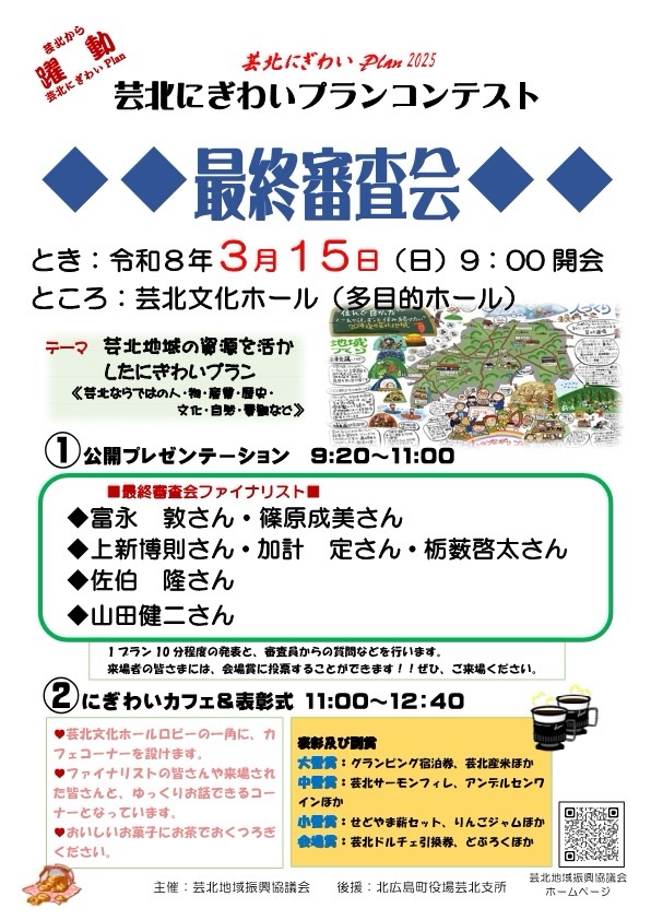 それぞれのファイナリストが発表する、芸北のにぎわいに繋がる『熱い想い』を聞きに、ぜひお越しください😊